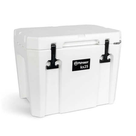 Dobrze przygotowany na dni bez prądu? Petromax Cool Box kx25 pozwala na zaopatrzenie się podczas kilkudniowej przygody. Ultrapasywny system chłodzenia działa tylko z dostępnym na rynku lodem, zimnymi okładami lub suchym lodem. Dwuścienne, izolowane puste przestrzenie kx25 utrzymują lód w chłodzie do 12 dni bez użycia kompresora lub absorbera. Bezkonkurencyjna korzyść: Wnętrze kx25 o pojemności 25 l jest zaprojektowane tak, aby można było przechowywać i transportować w pozycji pionowej 24 puszki 0,33 l lub 12 butelek 1 l. Również świeżo złowione ryby lub przyniesione prowianty mają swoje idealne miejsce w lodówce Petromax Cool Box.