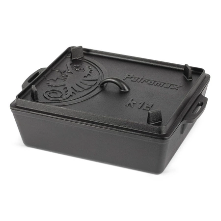 - Duża forma żeliwna k12 Petromax jest doskonała do pieczenia zarówno w kuchni jak i na ognisku. Pokrywa to też patelnia grillowa. Materiał: wysokiej jakości żeliwo. Gotowa do użycia - nie wymaga wypalania. Wym.: 11,5 x 30 x 40 cm, Waga: 12 kg, Poj.: 8 l