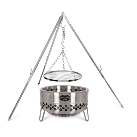 - Zestaw ogrodowy to: Innowacyjne bezdymne palenisko ogrodowe ze stali nierdzewnej Tyropit firmy Petromax oraz ruszt wiszący nad ognisko h-grate50 chrom plus trójnóg d1, - składany stojak nad ognisko.