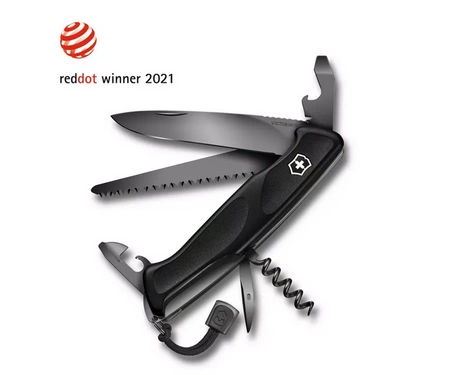 - Niezbędne narzędzie z monochromatycznym wykończeniem w kolorze czarnym. Wyprodukowany w Szwajcarii scyzoryk z 12 funkcjami. Wyposażony między innymi w piłę do drewna, rozwiertak i szpikulec.