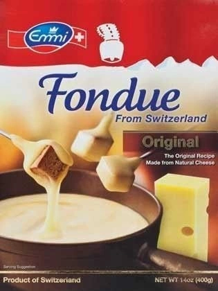 • Gotowa mieszanka serów, hermetycznie pakowanie (400g). Sery dobrane wg szwajcarskiej receptury o wybornej konsystencji i smaku. Zawiera m. innymi Emmentaler i ser Gruyere oraz wino. Produkt gotowy do spożycia po podgrzaniu. Emmi