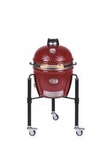 Grill ceramiczny węglowy Monolith JUNIOR PRO 2.0, bordowy ze stelażem na kołach, ruszt 33 cm
